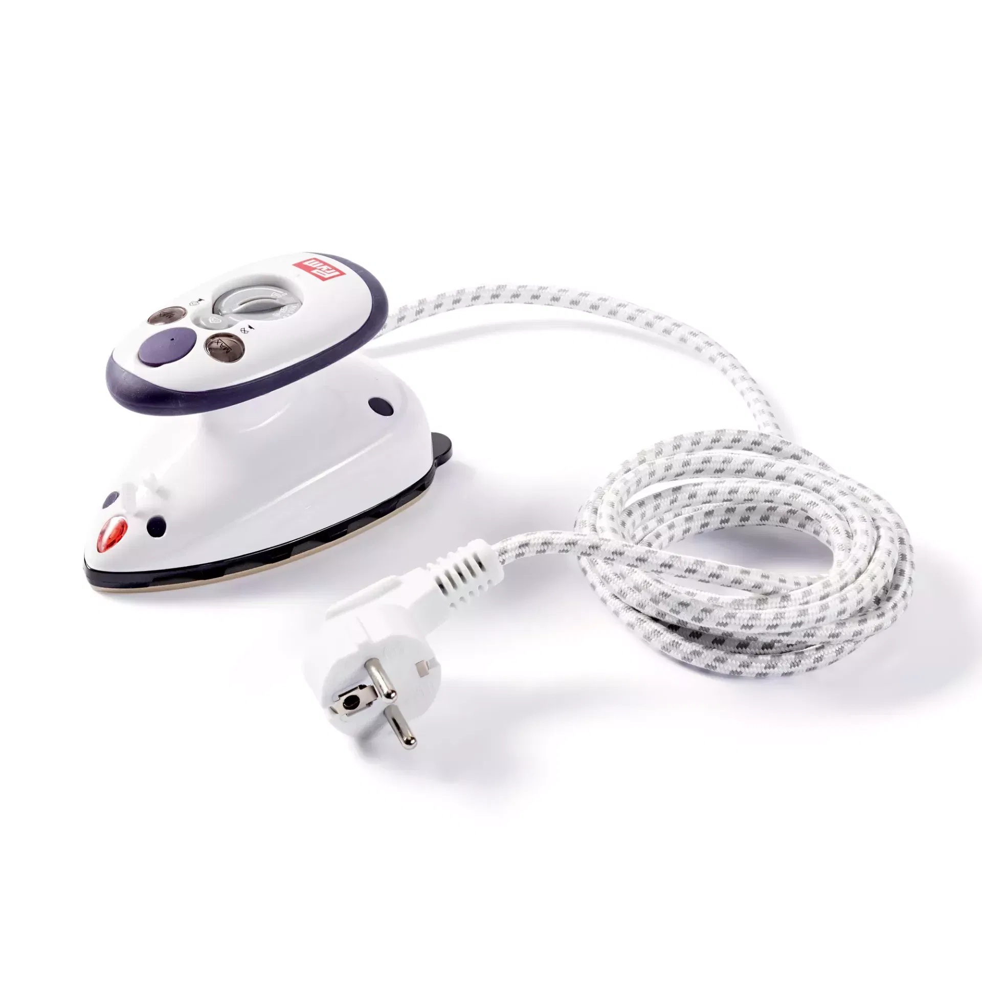 Mit dem handlichen Bügeleisen Mini lassen sich besonders filigrane Handarbeiten mit Vlies, oder das Umbügeln dünner Säume, bestens meistern. Gerade auf Reisen ist es ein nützlicher Begleiter zum Bügeln oder Ausdampfen faltiger Kleidung. Es liegt sehr gut und leicht in der Hand und bietet durch seinen besonders geformten Griff eine effektive Kraftübertragung. Die Spannung ist umschaltbar von 220 V auf 110 V. Für Großbritannien gibt es das Dampfbügeleisen mit UK‑Stecker und für die Schweiz mit CH-Stecker. Ein Messbecher zur Befüllung des Wassertanks und ein Aufbewahrungsbeutel sind ebenfalls in der Packung enthalten. WEEE-Reg.Nr. DE 71240936