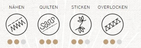 Ein Mercerisationsprozess während der Garn-Herstellung macht das Nähgarn reißfester, schrumpfarm und bügelfest. Das macht es so wunderbar vielseitig einsetzbar. Verwenden Sie SILK-FINISH COTTON 40 gern zum Nähen. Auch Kreuzstichmuster gelingen mit dem Nähgarn besonders gut. Probieren Sie das Garn auch mal als Greiferfaden beim Overlocken: In Kombination mit SERACOR als Nadelfaden kommen hierbei tolle Effekte zustande.