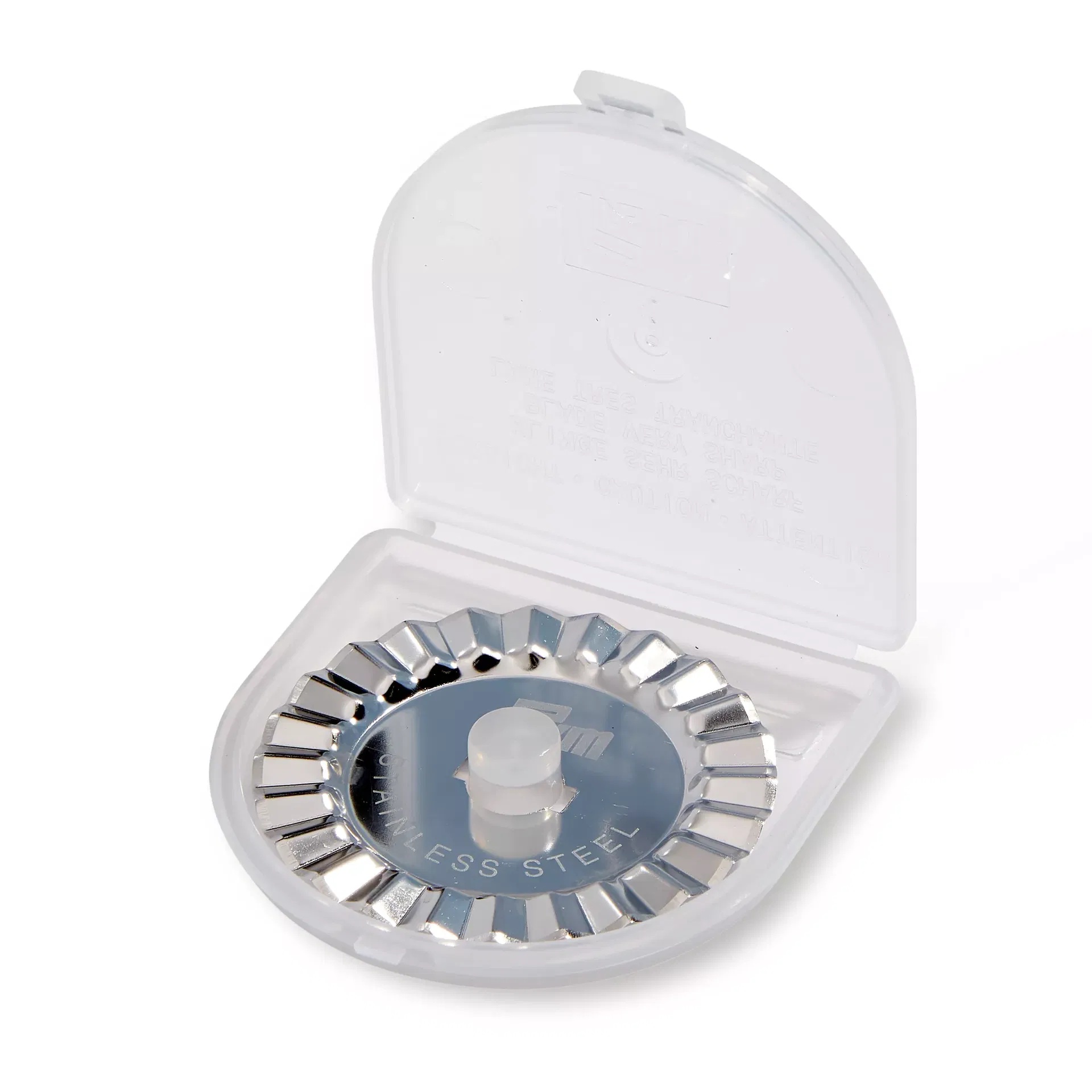 Ersatzklingen sind als Standardklingen aus hochwertigem Edelstahl für alle Prym Rollschneider erhältlich und lassen sich jederzeit bequem nachbestellen. Die ebenfalls lange haltbaren Wellenklingen und Zackenklingen lassen sich für die Prym Rollschneider Maxi und Maxi Easy, Comfort, Rollschneider Multi und den Rollschneider Omnicut verwenden. Die sicher verpackten Klingen sollten regelmäßig ausgewechselt werden, denn stumpfe Klingen führen zu Ermüdung, ungenauen Schnitten und beschädigen die Schneidematte. Die Auswechslung sollte mit Vorsicht erfolgen, denn die Klingen sind extrem scharf.